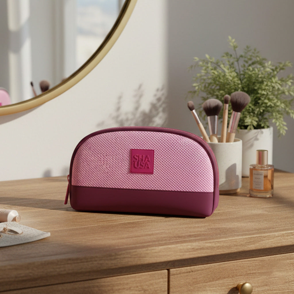 Neceser confeccionado en tejido técnico, brillante, con textura y base en polipiel. Práctico y resistente, ideal para llevar cosmética, maquillaje o esenciales de viaje con total comodidad. Un diseño funcional con un toque moderno.