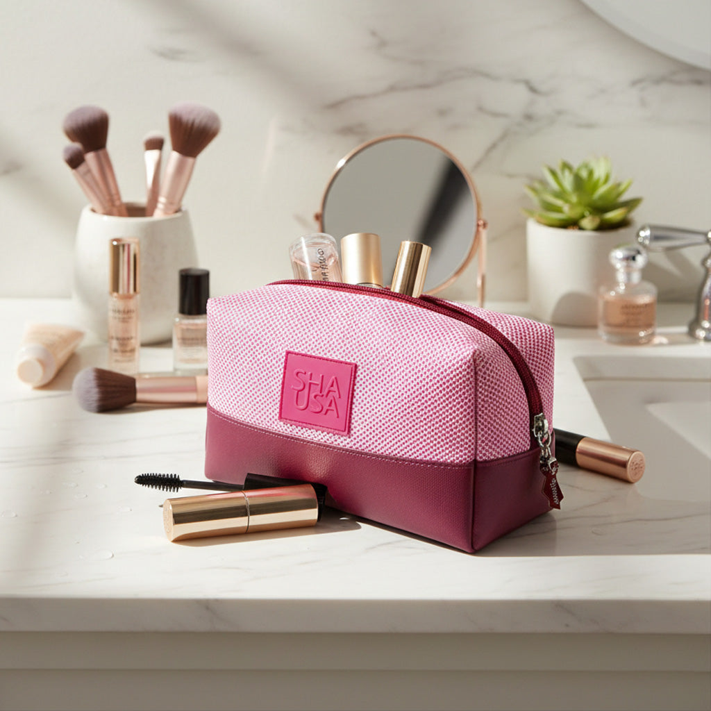 Neceser pequeño, confeccionado en tejido técnico, brillante, con textura y base en polipiel. Práctico y resistente, ideal para llevar cosmética, maquillaje o esenciales de viaje con total comodidad. Un diseño funcional con un toque moderno.