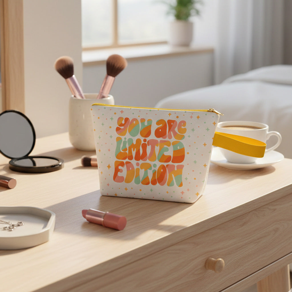 Neceser confeccionado en tejido resistente ecológico con estampado colorido en tonos veraniegos. Ligero y práctico, ideal para llevar maquillaje, productos de aseo o pequeños accesorios. Incorpora cierre de cremallera y asa lateral color amarillo para un uso cómodo tanto en el día a día como en viajes.
